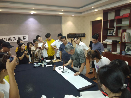 张同印教授1995年和欧阳中石先生一起创办首都师范大学中国书法文化研究院和书法专业,开始招收书法研究生,从事书法高等教育、理论研究和创作几十年。张教授共进行了两场讲座,每场都是3个小时,他讲学像讲评书,脉络清晰、妙趣横生,老师和同学们都表示这是自己听得水平最高的讲学,受益匪浅。张同印教授还到书法教室对学生的作品进行了点评和指导,并留下墨宝激励书法专业师生。