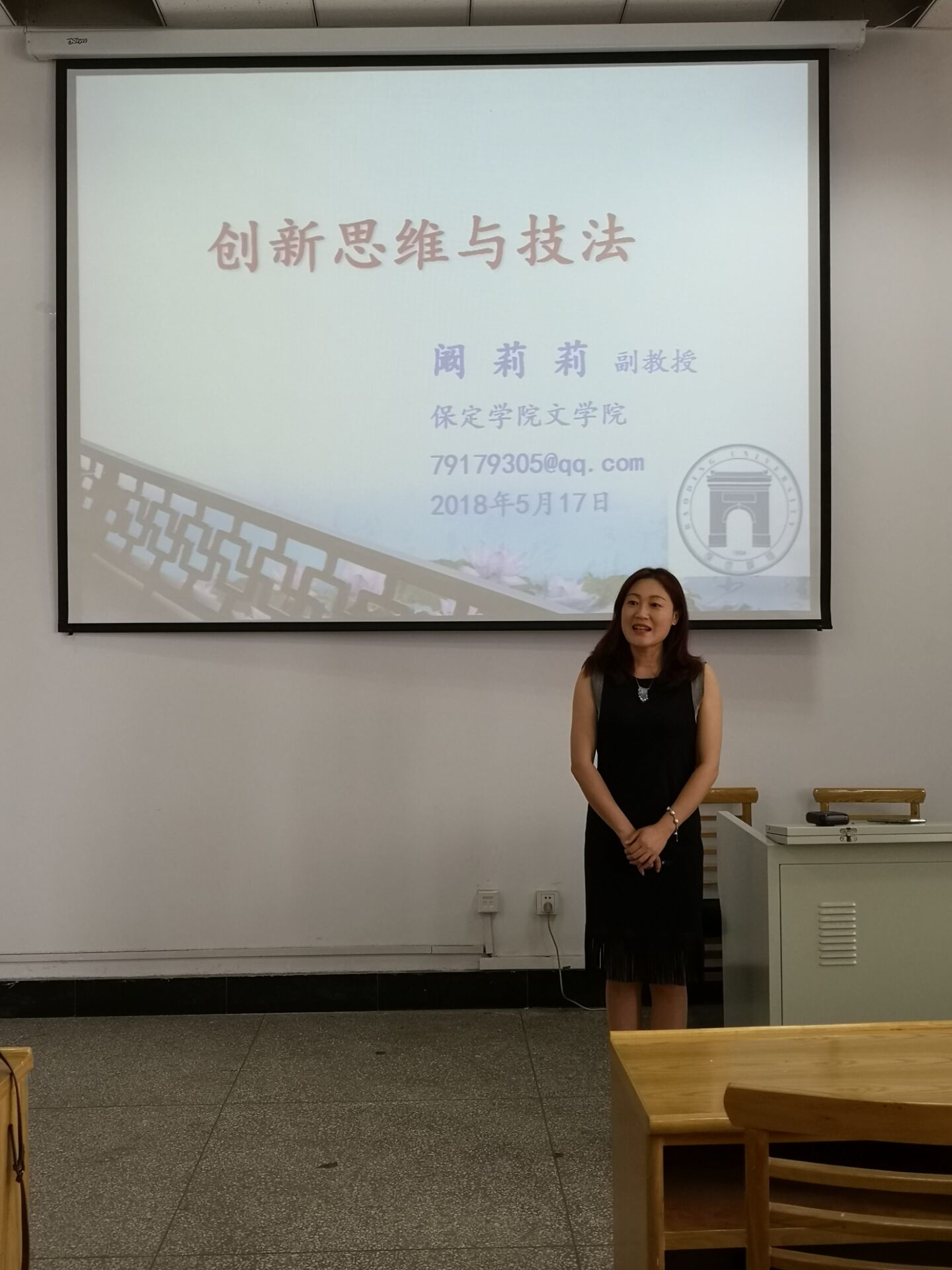 2018年5月17日上午,bat365在线中国登录入口阚莉莉老师受邀到河北农业大学人文社会科学学院进行“创新思维与技法”专题讲座,此次讲座在人文社会科学学院四楼会议室进行,河北农业大学中文系闫红主任、教师孙志敏以及120名秘书学及汉语言文学专业学生参加并聆听了讲座。
