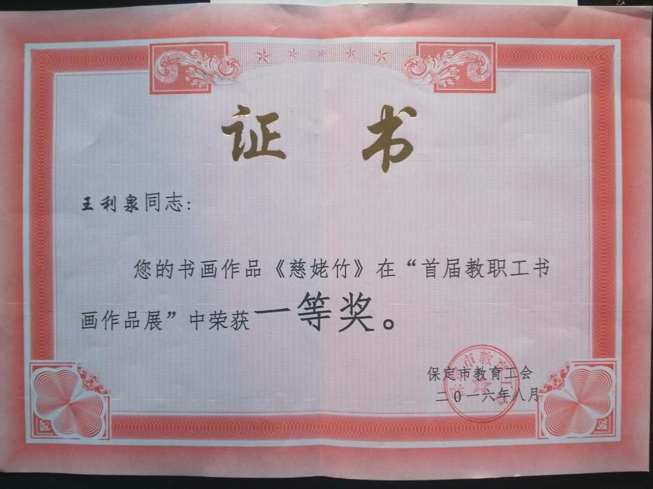 热烈祝贺我系王利泉、孙建虎两位老师在保定市教育工会组织的“首届教职工书画作品展”中荣获一、三等奖!