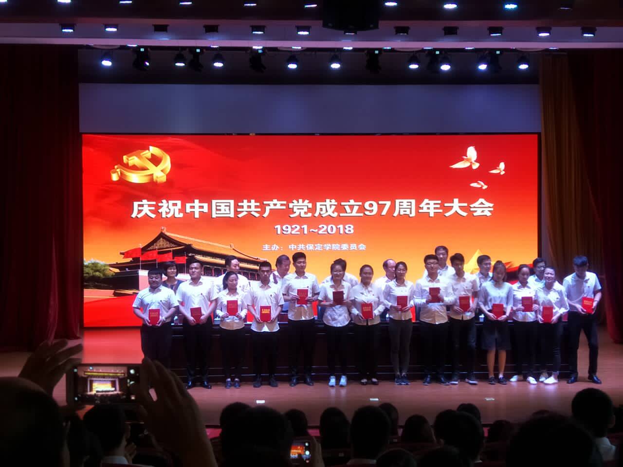 6月29日下午,我校在畿辅文化会堂隆重举行庆祝中国共产党成立九十七周年大会。bat365官网党总支再次荣获2017—2018年度先进基层党总支,张爱辉荣获优秀党务工作者,赵艳平、阚丽丽、王天慈获得优秀党员称号。