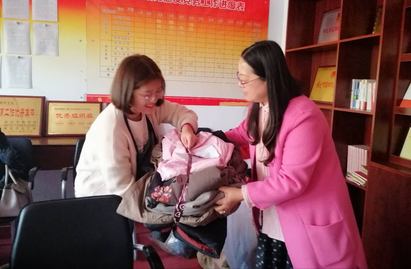 为响应党中央、省市委、学校党委号召和统一安排部署,bat365在线中国登录入口党总支于2018年10月17日扶贫日,倡议全院师生积极参与扶贫捐赠活动。bat365官网广大师生积极响应党总支倡议,迅速参与到扶贫捐赠活动中来,大家踊跃捐款捐物,营造了人人关心扶贫,人人支持扶贫,人人参与扶贫的良好氛围。截止2018年10月18日,共收到捐款2300元,棉被、毛毯、床单、被罩、枕巾等13条,过冬衣物96件。