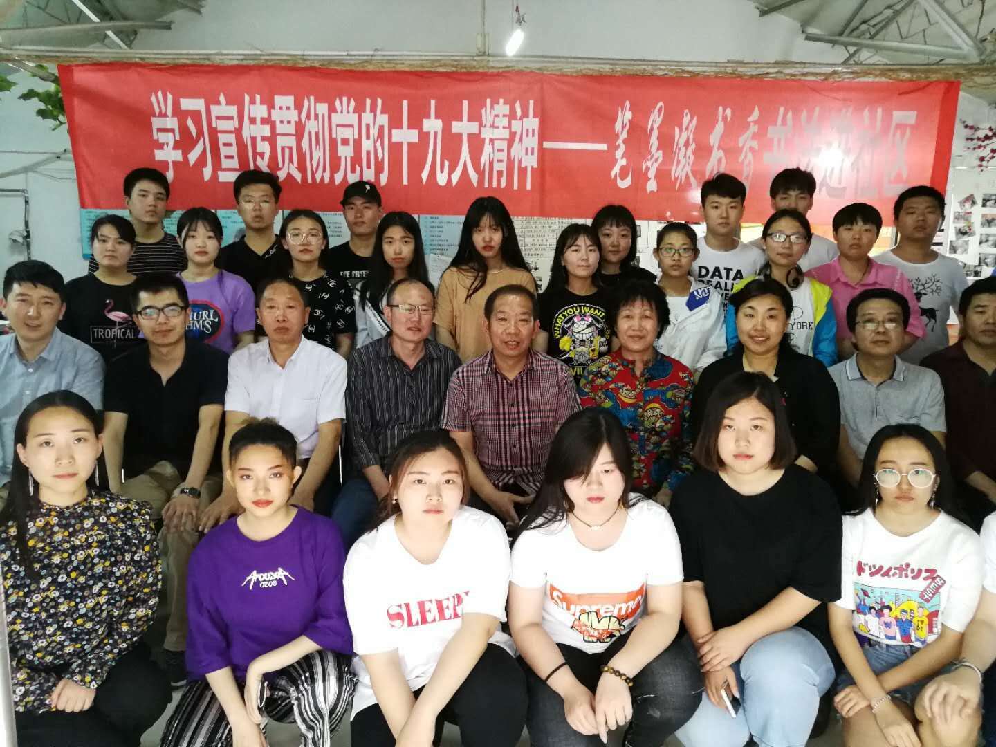 2018年5月23日下午,bat365在线中国登录入口与西关街道金台驿社区联合办事处联合开展了“学习宣传贯彻党的十九大精神——笔墨凝书香书法进社区”志愿服务活动。