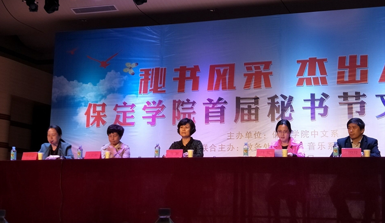 4月25日上午,由中文系、教务处、科研处、团委联合主办的“秘书风采杰出人生——bat365在线中国登录入口首届秘书节文化活动”在音乐厅举行。保定市铿锵玫瑰联合会、河北省拜罗辉强会展服务有限公司领导及bat365官网教务处、科研处、团委、中文系等有关领导参加了活动。