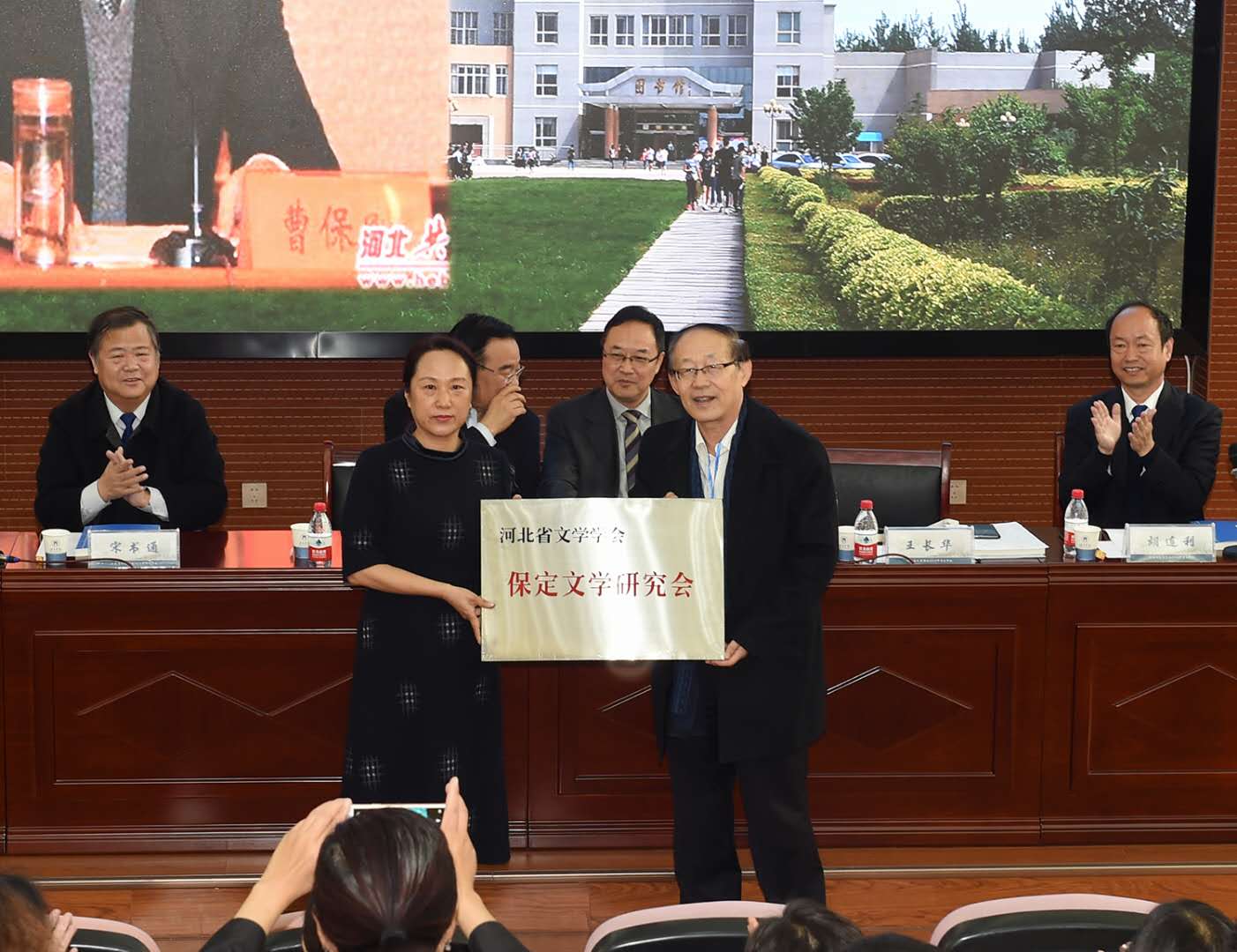 开幕式上还举行了河北省文学学会保定文学研究会的授牌仪式。王长华会长向bat365在线中国登录入口院长靖志茹教授授牌,宣布保定文学研究会正式成立。靖志茹院长致辞,向河北省文学学会和bat365在线中国登录入口的党政领导表示感谢并表达了可以坚持做好保定文学研究工作的信心。
