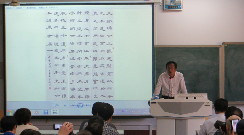 2017年4月26日下午,著名书法家、书法教育家白建军先生应邀来我系为书法专业学生做了关于书法创作方面的专题讲座。