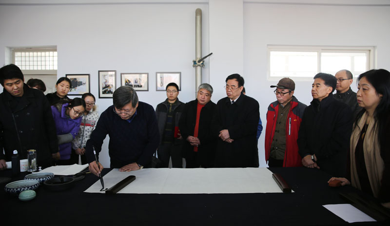 12月22日上午,河北省文联副主席、省书协主席刘金凯,河北省书协副主席、河北大学艺术学院院长刘宗超,河北省书协副主席吴占良,中国书法家协会会员、青年书法家张永辉一行来到我系书法交流中心,与书法学专业师生交流书法技艺。