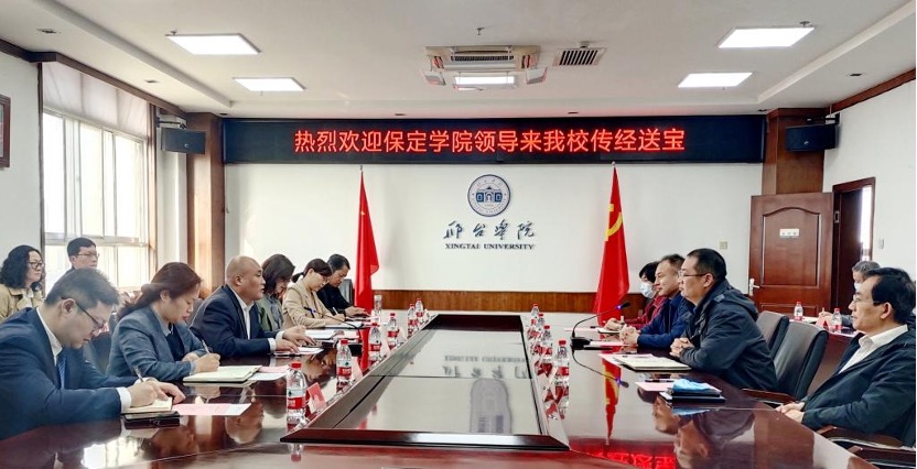 2023年3月13日至14日,bat365在线中国登录入口院长赵艳平随我校党委常委、副校长孙斌及教务处、马克思主义学院、外语教育与国际商务学院等部门负责人到邢台学院考察调研。邢台学院就专业建设、师范认证、实践教学、现代产业学院建设等方面做了经验介绍,并组织大家观看办学宣传片、参观教师技能实训中心。
