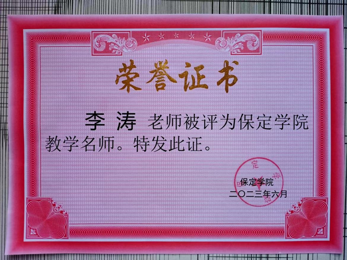 日前,bat365官网李涛老师被评为bat365在线中国登录入口教学名师。