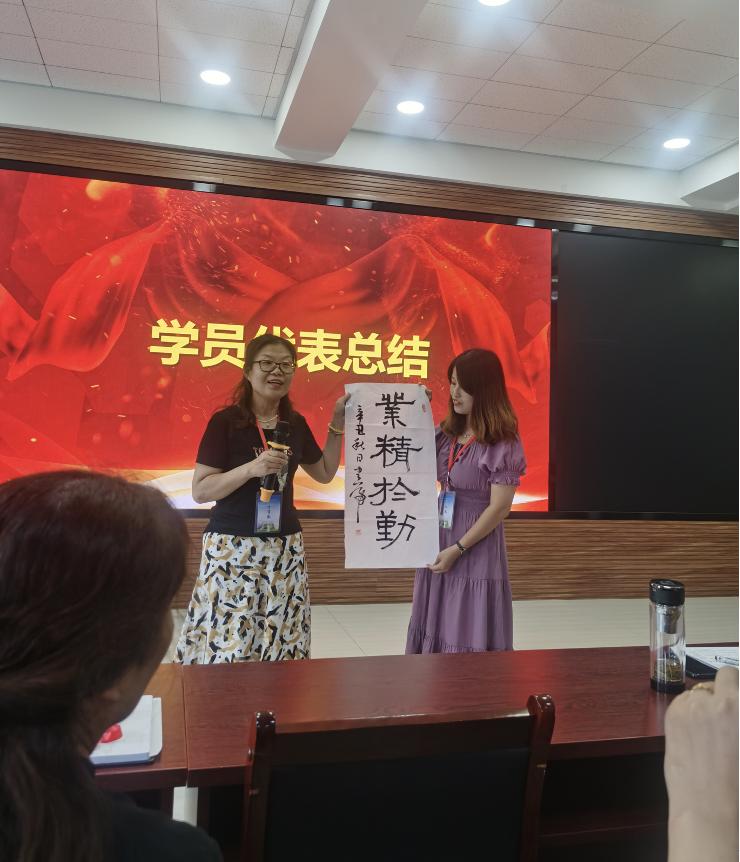 语文学科除了完成常规培训学习,进行微课展示、撰写复盘反思表、简报、美篇以外,还进行了硬笔诗词书法展示活动,彰显文化底蕴,加强教师基本功训练。班主任书赠全班学员“业精于勤”书法作品,勉励大家不断精进,共同进步。