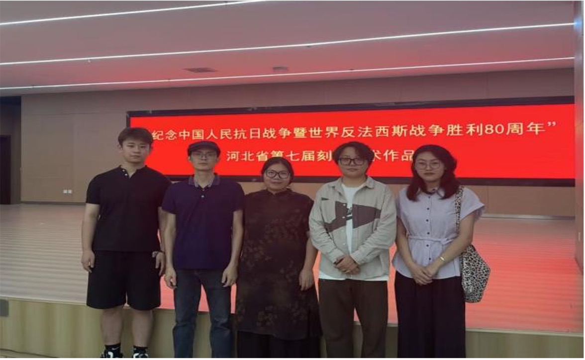2025年8月30日,河北省书法家协会、邢台市文学艺术界联合会主办的“纪念中国人民抗日战争暨世界反法西斯战争胜利80周年”河北省第七届刻字艺术展在邢台市南和区文化馆举办。bat365官网书法学专业师生凭借扎实的专业功底和独特的创作视角,在此次展览中斩获佳绩,19人入展,3人入选,张洪威老师作品获奖,赵晓雅同学作品获奖提名。