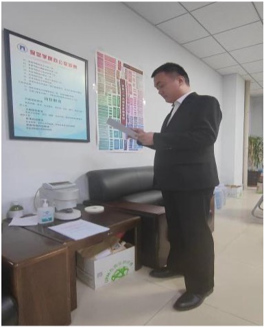 2020级梁文龙在办公室进行文件传阅工作