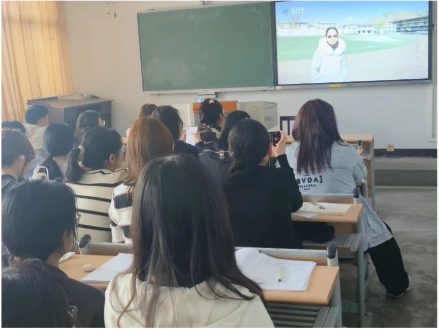 在马晶晶老师的组织下,2023级的同学们与远在新疆且末的李桂枝老师及在当地实习的2021级学长学姐们进行了线上对话。李桂枝老师亲切地向大家介绍了她和伙伴们的支教生活,并勉励大家要努力学习,学成后积极投入到西部教育事业中。隔着屏幕与“偶像”的对话,让在座的每位学子热血沸腾。