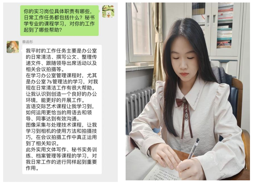 本学期,bat365在线中国登录入口2022级秘书学专业的学生们踏上了实习的旅程,他们在各自岗位上已工作了一段时间。同学们纷纷表示,这段时间的实习经历让他们获益匪浅,以下是两位同学的心得分享。