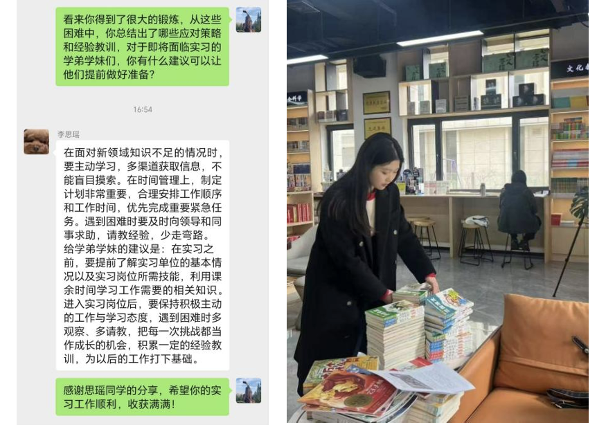 李思瑶同学作为东湖云端产业园接待专员,主要负责协助园区活动开展、图书管理工作,还负责接待来访者及园区自媒体宣传工作,效果良好。在此岗位上,她凭借秘书学专业知识,在文案撰写、场地布置、沟通交流等方面展现出良好的专业素养。李思瑶同学表示,实习中最大的挑战是自媒体运营及接待讲解中的困难。未来,她希望提升沟通应变与时间管理能力,提高品牌运营能力,并将此次实习经验运用到未来职场。