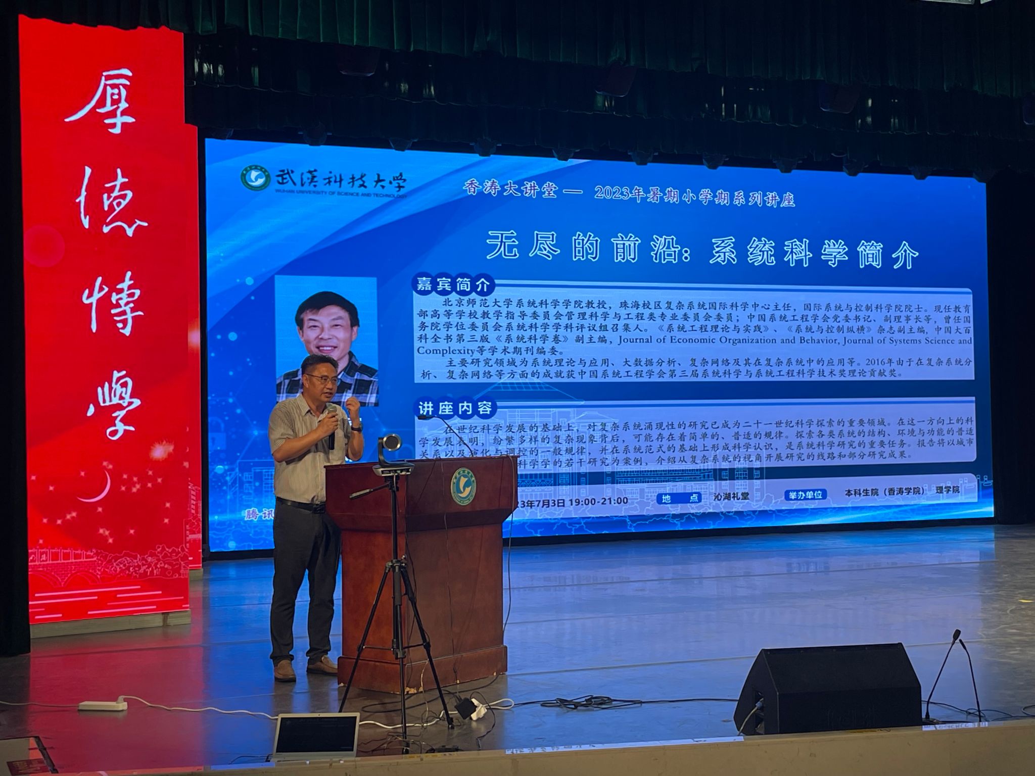(通讯员苏青青 申杨)7月3日晚19:00,北京师范大学狄增如教授受suncitygroup太阳新城官网邀请在沁湖礼堂为太阳新城官网师生作学术报告,题目为“无尽的前沿:系统科学简介”。suncitygroup太阳新城官网领导及师生代表、香涛学院全体师生出席讲座。讲座由本科生院副院长、香涛学院院长(兼)张志清教授主持。