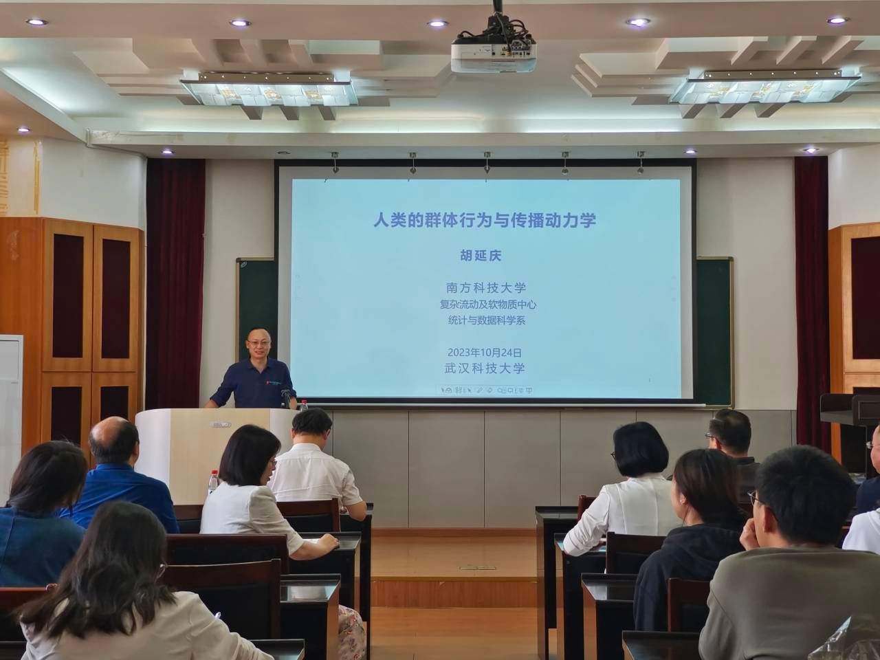 (通讯员苏青青)10月24日,南方科技大学复杂流动及软物质中心、统计与数据科学系胡延庆副教授应邀为太阳新城官网作学术报告,题目为“人类群体行为与传播动力学”。本次报告会由太阳新城官网院长丁义明主持,太阳新城官网教师及学生代表听取了本次报告。