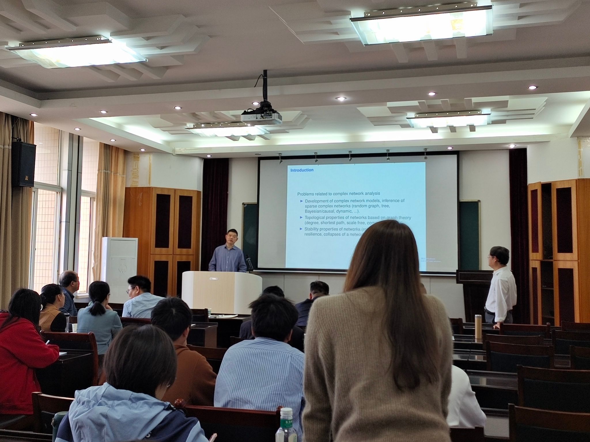 丁义明院长向在座师生介绍了田天海教授的成就,并代表全体师生对于他的到来表示热烈欢迎。丁院长表示:田教授的报告将深入探讨大规模调控网络在正负调控影响下的弹性问题。这对于我们理解和设计能够在波动环境中保持稳定性的复杂系统具有重要意义。
