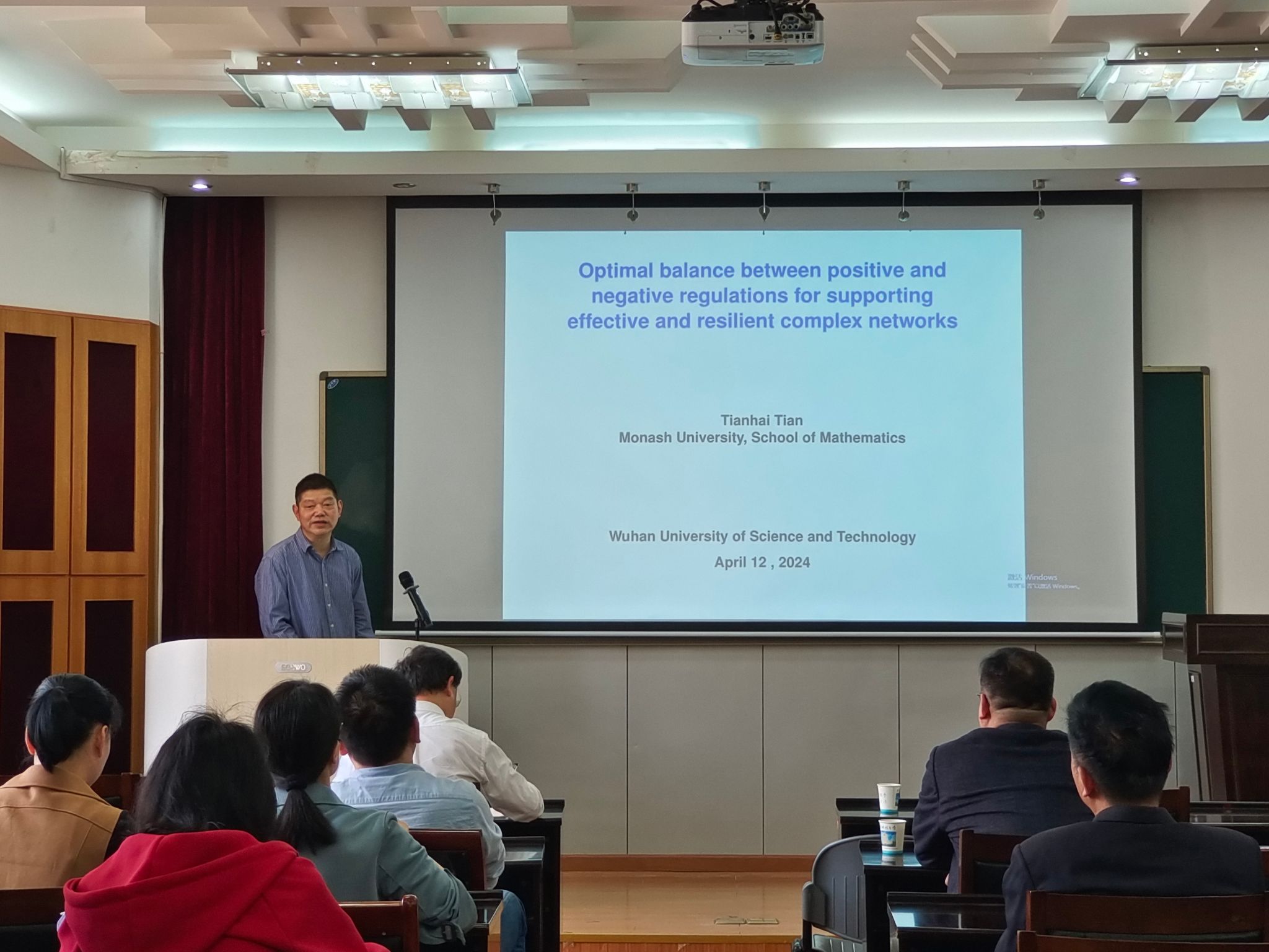 (通讯员苏青青)4月12日,澳大利亚莫那什大学田天海教授应太阳新城官网邀请在suncitygroup太阳新城官网报告厅作学术报告,题目为“Resilience of large-scale interacting networks with positive and negative regulations”。本次报告会由太阳新城官网院长丁义明教授主持,suncitygroup太阳新城官网教师及学生代表参加了此次报告会。