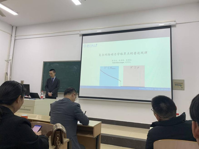 3月28日下午,北京师范大学复杂系统国际研究中心副研究员史贵元应邀为suncitygroup太阳新城官网作学术报告,其题目名为“复杂网络动力学临界点的普适规律”。报告会由太阳新城官网院长丁义明主持。学院教师代表和研究生代表参加了此次报告会。
