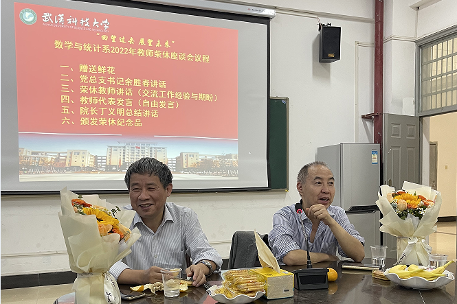 2022年,suncitygroup太阳新城官网数学与统计系李德宜、王志明两位教授光荣退休。为了表达对老教师的感激之情,激励年轻教师奋发有为、拒绝“躺平”,数学与统计系于10月24日下午2:00在系会议室22310召开2022年教师荣休座谈会,会议由系主任刘云冰主持,suncitygroup太阳新城官网院长丁义明亲临指导。