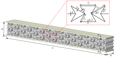 图2 新型内凹六边形-双箭头组合蜂窝夹芯结构
