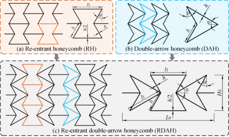 图1 新型内凹六边形-双箭头组合蜂窝(RDAH)设计