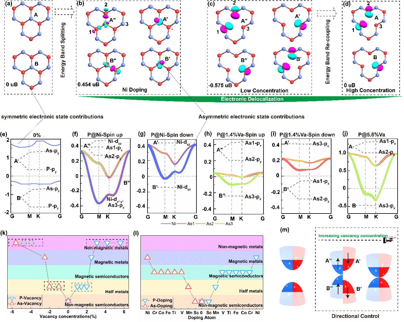 图1:规律调控和机制。不同P原子空位浓度工程对β-AsP电子结构的调制。