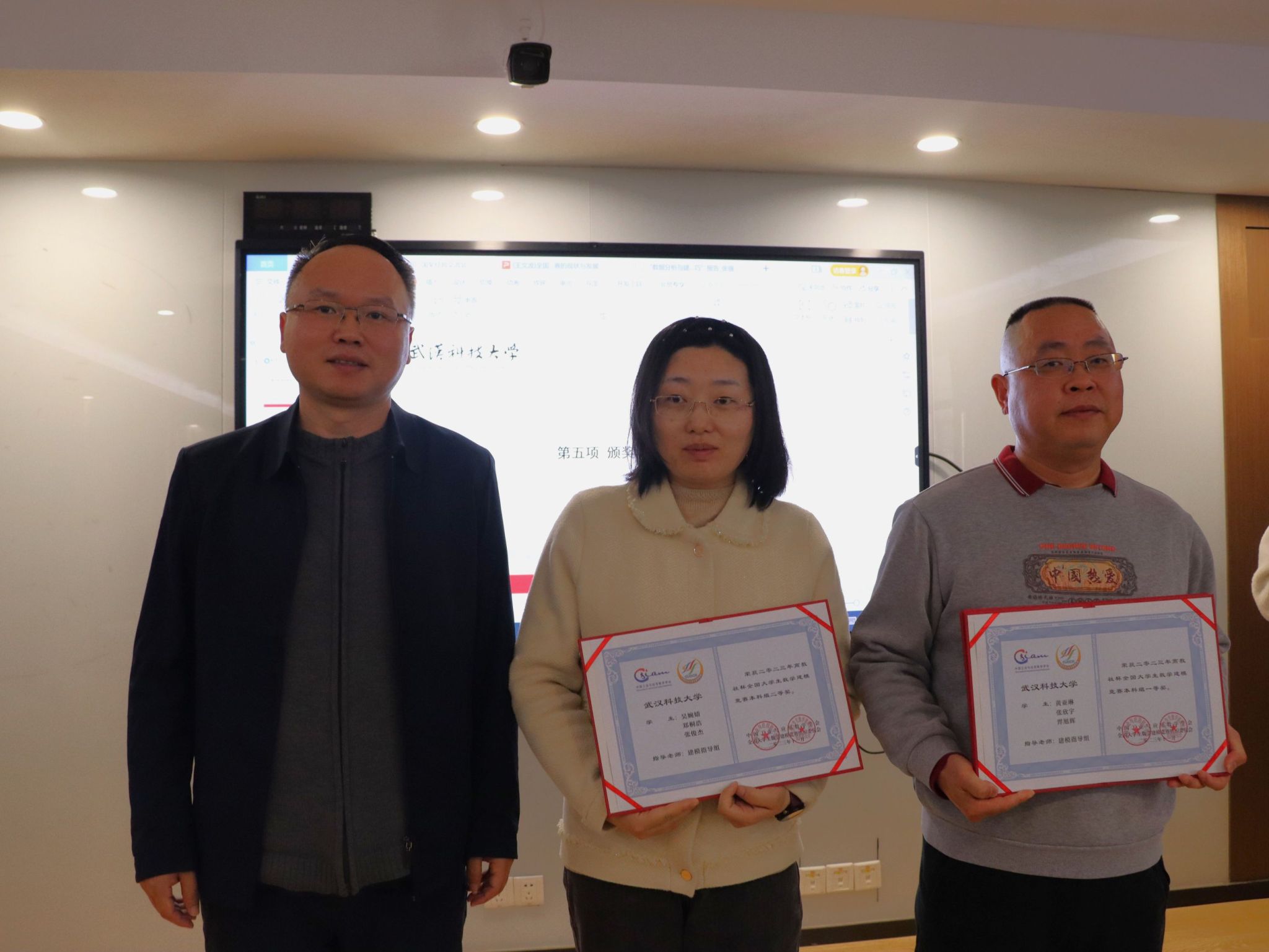 会后,汪汝武、丁义明、王文波分别为优秀指导老师、获数学建模竞赛国赛一等奖及二等奖的队伍颁奖。
