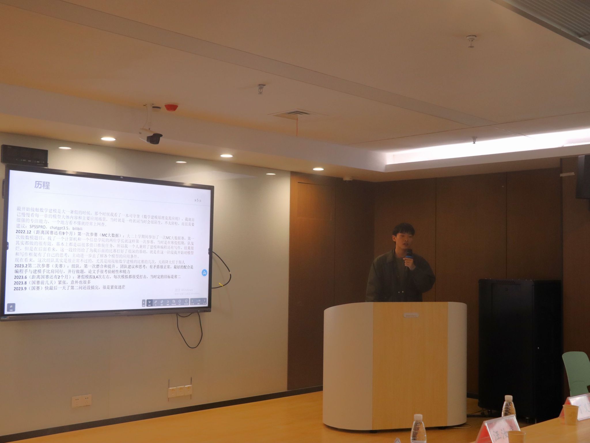 2023年获得数学建模国家级奖项的队伍代表分享了赛事经历,从参赛历程、解题方法和思想准备等方面进行了分享,讲述了获奖背后的方法与努力,解答了参会学生提出的问题。