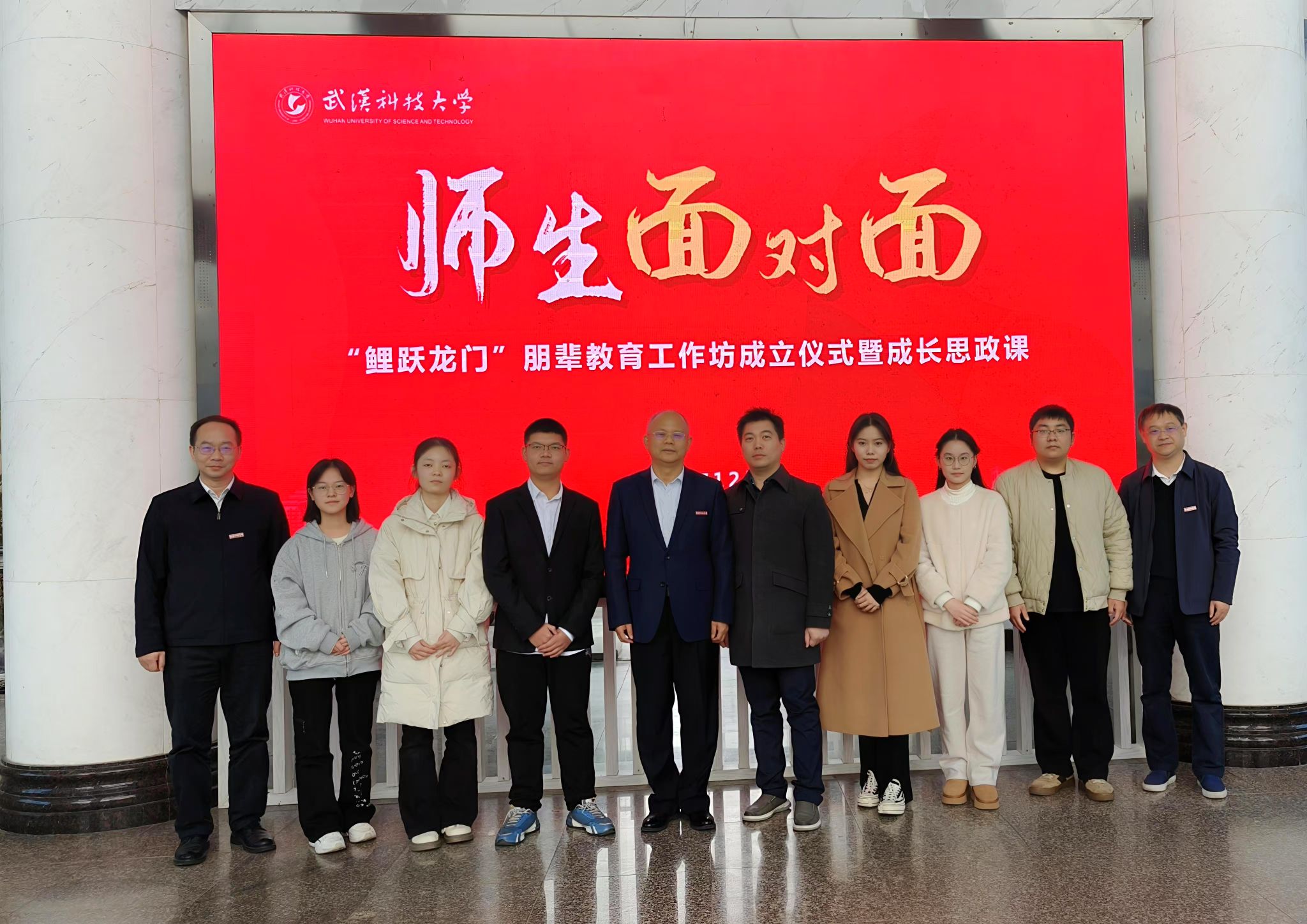 武科大网讯 12月5日,“师生面对面”系列活动之“鲤跃龙门”朋辈教育工作坊成立仪式暨成长思政课在suncitygroup太阳新城官网举行。校长倪红卫给suncitygroup太阳新城官网50余名学生讲授成长思政课,共话朋辈教育,探讨人生理想。